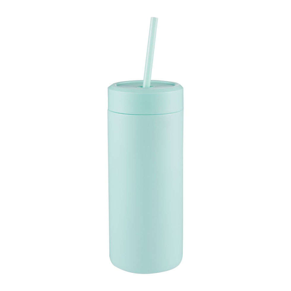 Made from 91% recycled stainless steel with double wall insulation, this Sol Tonal Recycled Skinny Straw Tumbler keeps beverages cold for hours. The durable powder coating minimizes condensation and drips on surfaces. With a popular skinny tumbler shape and variety of on-trend colors and a screw-top lid with silicone straw holder that allows you to sip securely without splashes or leaks.